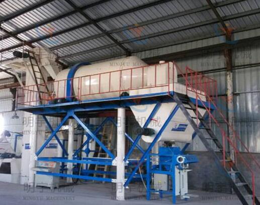 2.配料装置:由料斗计量秤、供料蛟龙、排料装置、微料添加装置、电脑控制系统组成。它可根据配方将不同原料自动计量,减少劳动力强度和环境污染,也保证了腻子粉的产品质量。